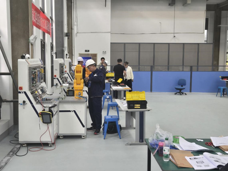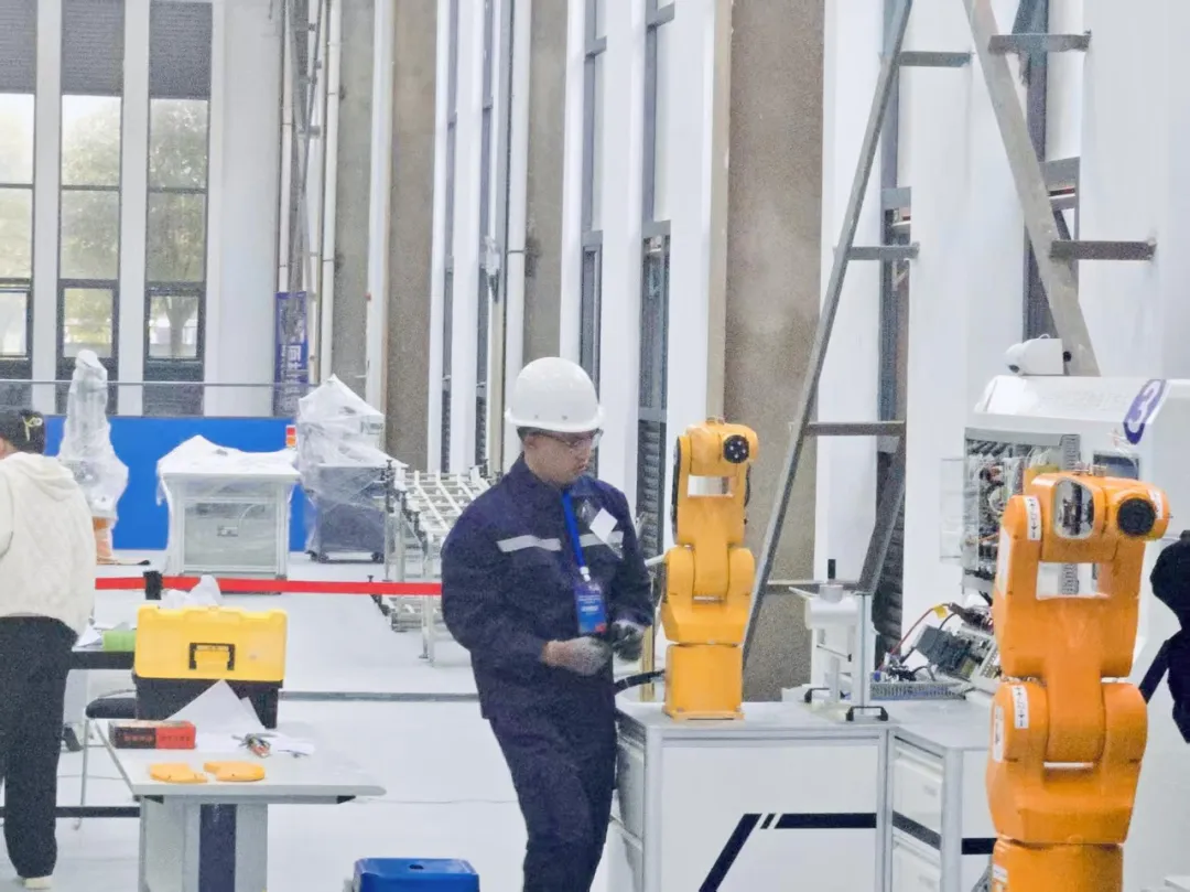 此次竞赛分为理论知识考试和实际操作考核两部分,全面考察选手在工业机器人系统运维领域的专业知识、技术应用能力及安全生产意识。在理论环节,选手需熟练掌握机械电气基础、机器人系统原理、法律法规及数字化应用知识;实操环节则要求选手在规定时间内完成工业机器人本体组装、系统排故、功能测试等任务。比赛中,罗兴浩选手沉着应对、操作流畅,展现出高超的专业素养。